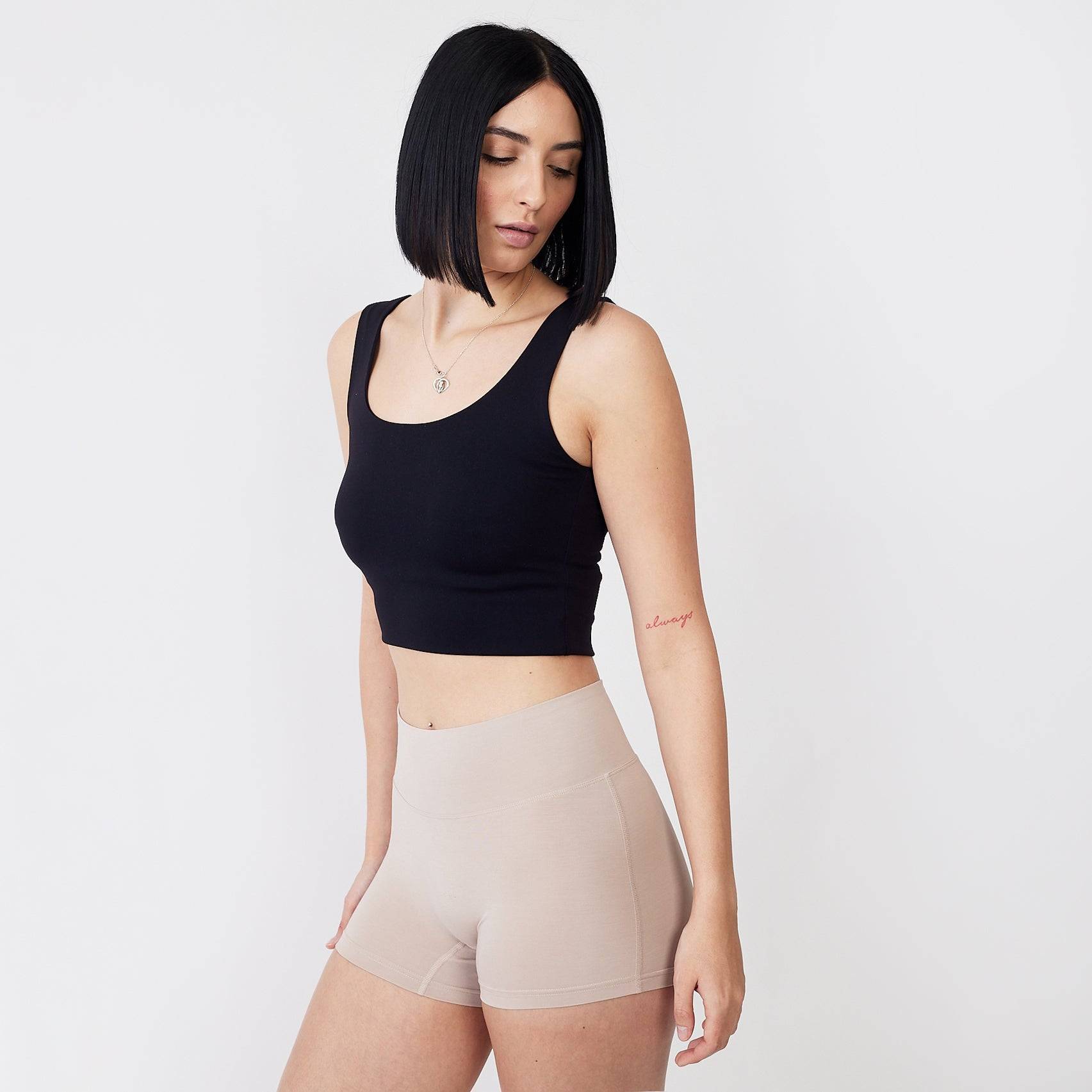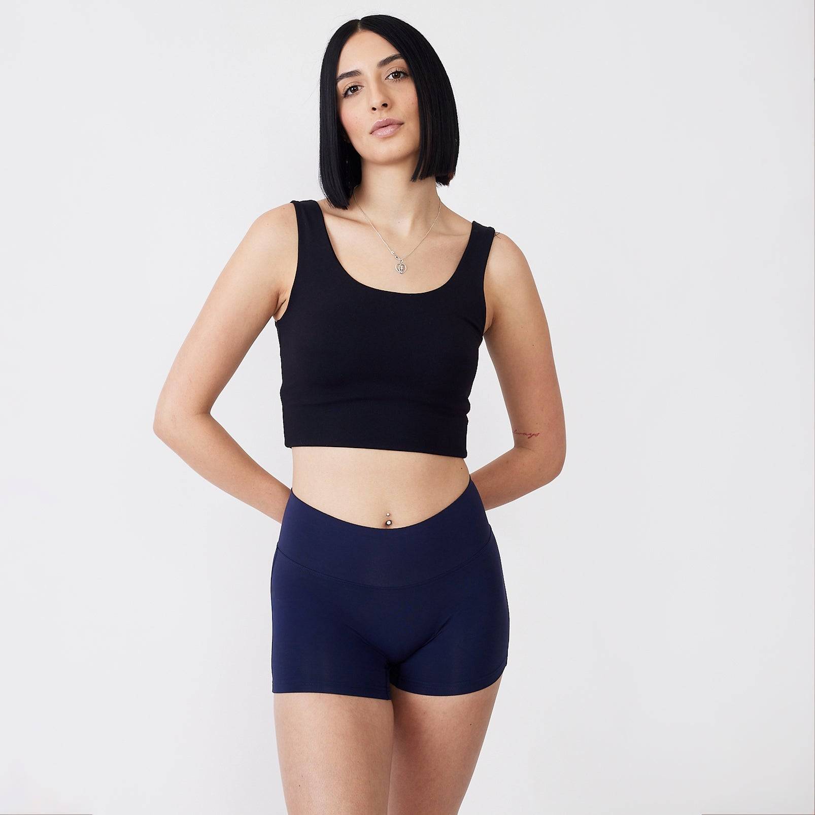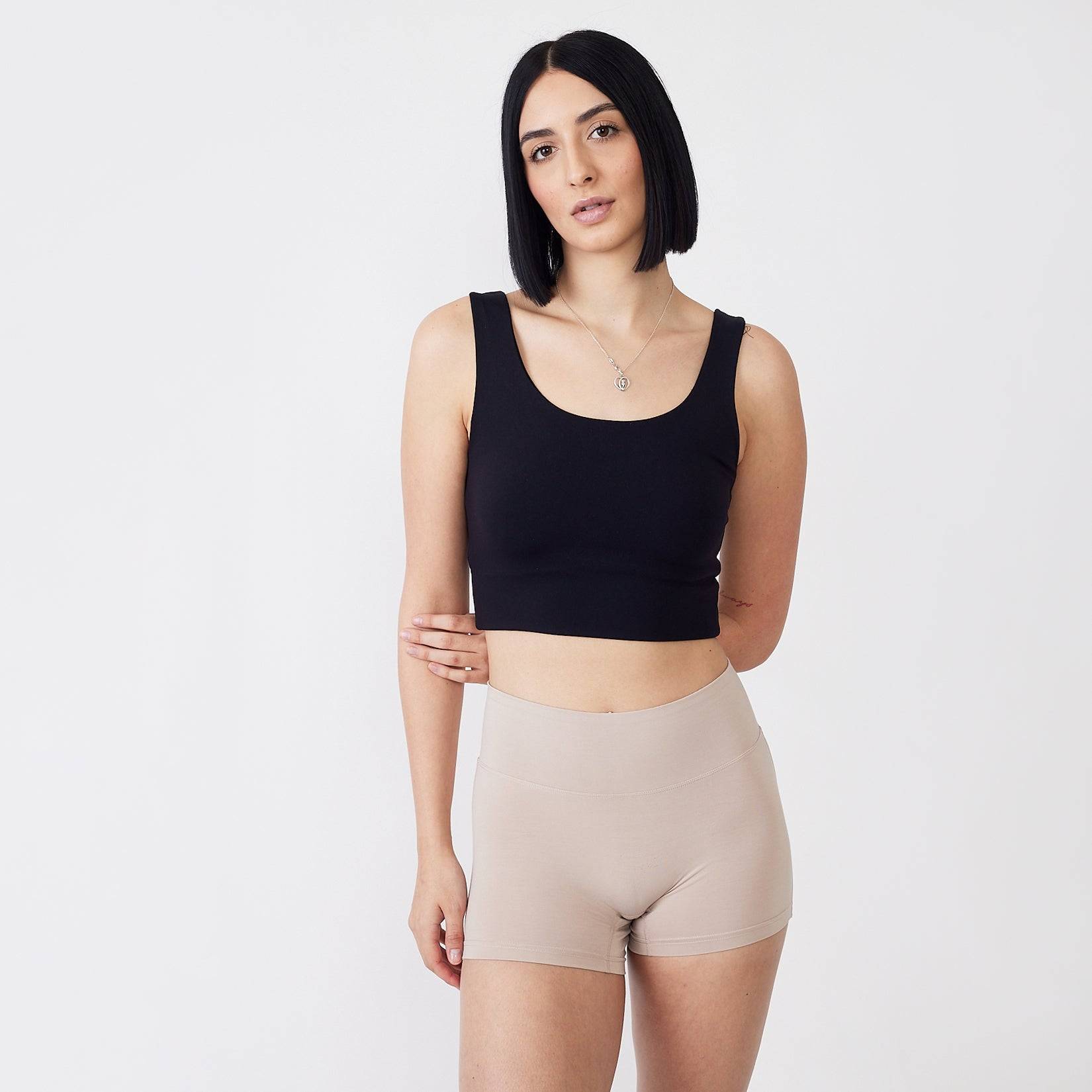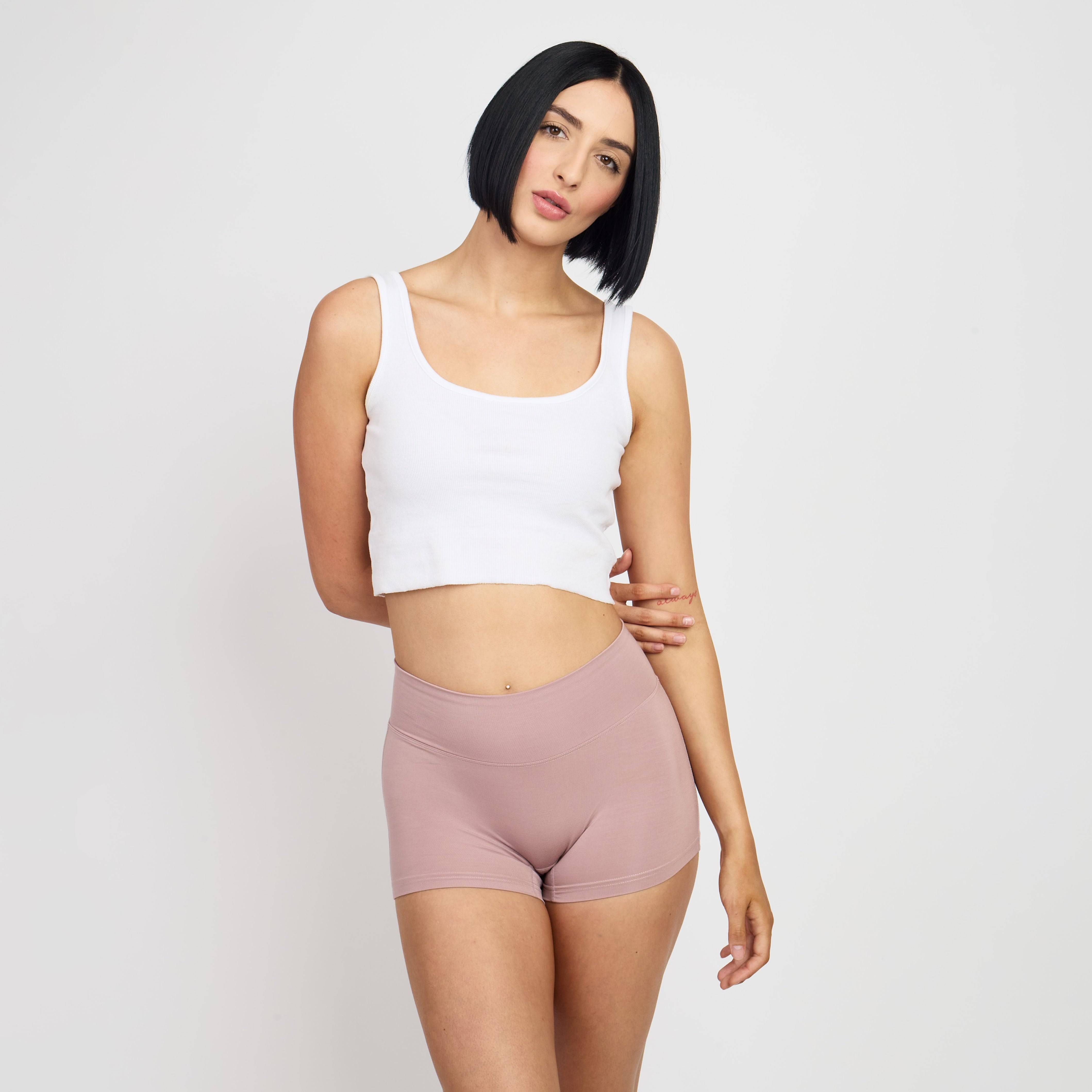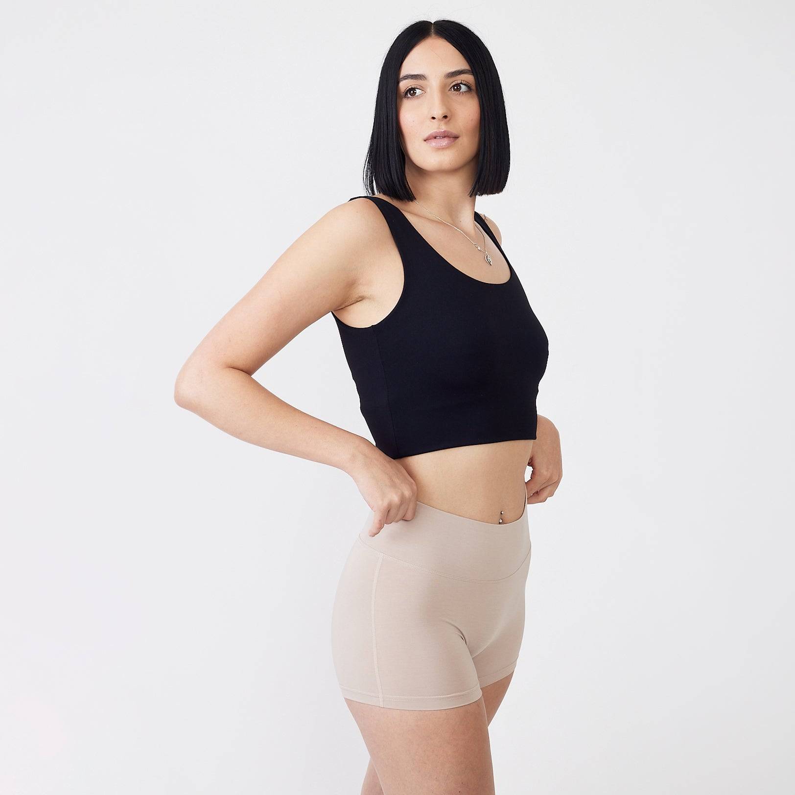 Made from ultra-breathable bamboo with 2" inch boyshort coverage. The True High Rise offers a secure, smoothing fit — and the gusset is thoughtfully designed to hold a winged pad when needed.